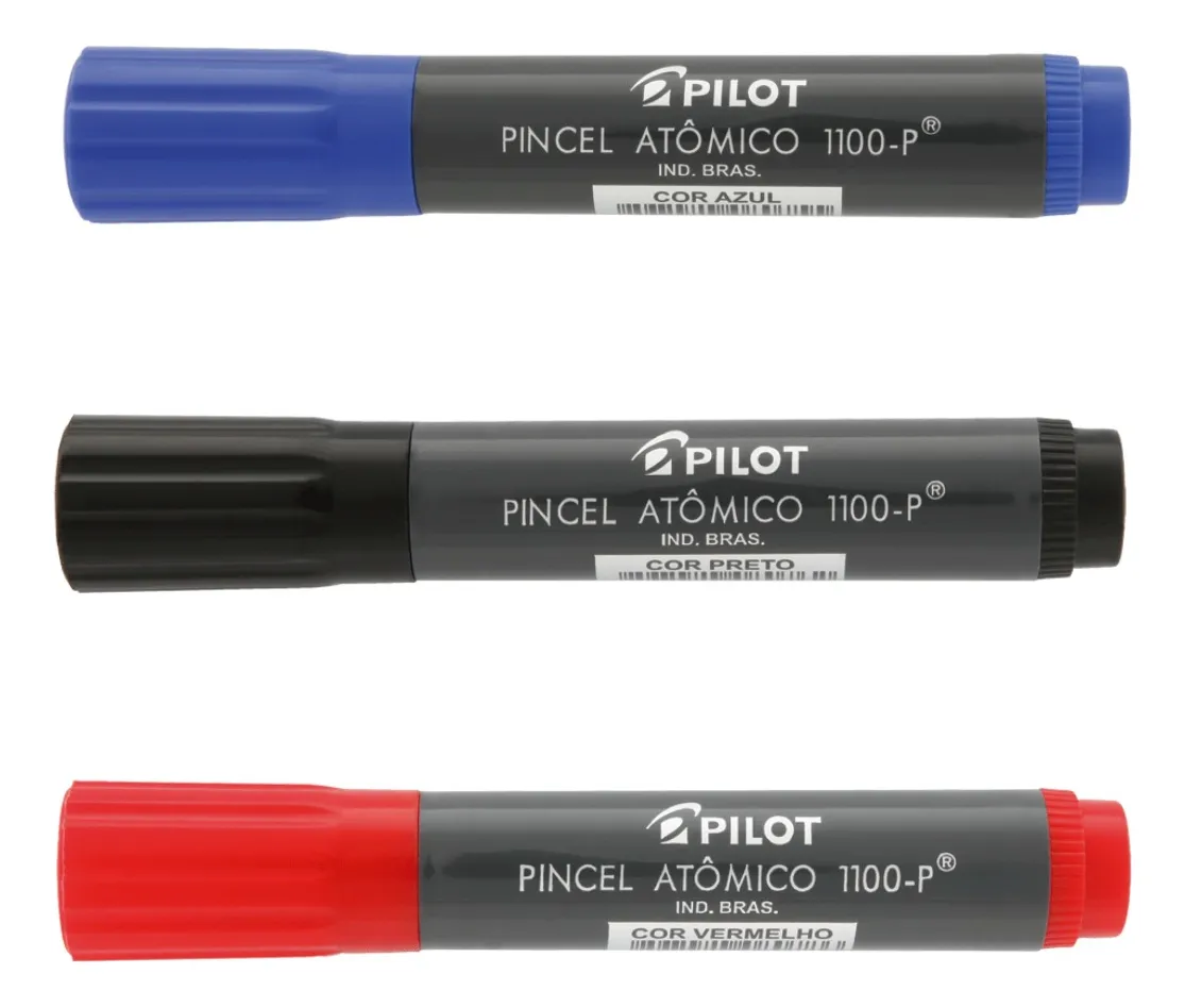 O Marcador Permanente Atômico 1100-P Pilot é um clássico e versátil pincel atômico com tinta permanente à base de álcool, ponta de feltro chanfrada indeformável, ideal para marcar, escrever e desenhar em diversas superfícies.