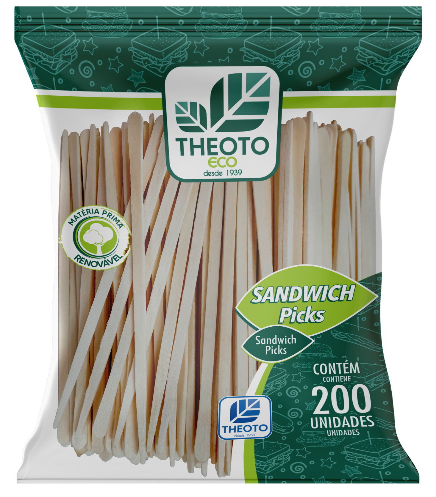 A "Palheta De Madeira PARA/sanduiche E Café 24x200 - Theoto" é um palito de madeira para sanduíches, também conhecido como sandwich pick ou palito para petiscos.